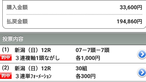 《速報》新潟記念(GⅢ)も万券スバリ! ◎▲2点目!120倍&パーフェクト的中! |