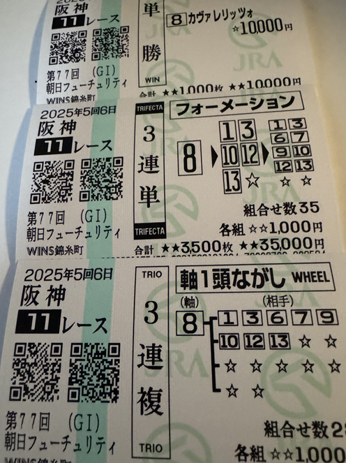 馬連万券で56万円獲得おめでとうございます!